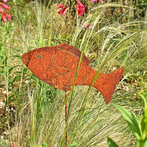 This wonderful set of Fish silhouette stakes for the garden are ideal to place in borders and look especially good placed amongst grasses. Made from steel with a vintage rusty finish, this set of 3 Fish ornaments each come on a strong stake to place in the ground. Total height of each Fish is 58cm, width 20cm. Perfect ornaments for a nautical theme in the garden and would make a wonderful gift idea for someone living by the sea.