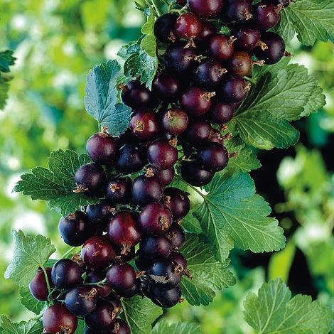 This unusual fruit bush is the result of a cross between a blackcurrant and a gooseberry which has produced a soft fruit with a delicious blackcurrant flavour. The leaves of Casseille look like those of a gooseberry whilst the fruit look like large blackcurrants. Each thornless bush is capable of producing several kilos of fruit with a very sweet taste and a hint of tartness. These very fragrant fruits, rich in Vitamin C, make the ideal addition to a fresh fruit salad or a summer puddings. Casseille bushes are self fertile and the berries can be harvested from mid July. Height and spread: 2m (6′, 6″).