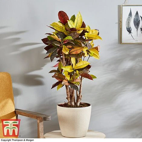 Better known as Croton or Joseph’s Coat, this eye-catching shrub boasts vibrant technicolour foliage! The large, oval leaves are stiff and glossy, with a unique mottled pattern in brilliant red, gold and green. Each evergreen leaf is quite unique, creating a superb focal point for a prominent position indoors.