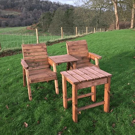Deluxe Companion Set: The Deluxe Companion Set is an ideal bistro set for people who seek a calming garden experience and are attracted to the natural beauty of wood. The set boasts an interesting design of two armchairs and a shared middle table, all in one piece. An extra coffee table will come handy as you can rest several things there like your glasses, your drink, a snack, books, or a shared platter. Solitude is good, company is ideal and three’s a crowd! The Deluxe Companion Set is made of Scandinavian Redwood which is a beautiful and durable wood resistant to decay and disease. It is fully treated for your peace of mind. The generously sized and sturdy seats come with an optional set of cushions in any one of three attractive colours. Invite your loved one to sit with you and stargaze together or talk about life amid your lovely garden. No matter the moment, the Deluxe Companion Set is sure to enhance your outdoor space with its ingenious design and its rustic charm of natural wood.