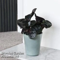 This pretty little succulent forms a neat, shapely rosette of fleshy foliage. Each lilac-grey leaf is edged in pink, tapering to a sharp point at the tip. In summer, it sends up slender stems of pink flowers that add seasonal interest to your home. Echeveria ‘Purple Pearl’ is an undemanding house plant – drought tolerant, low maintenance and easy to grow. It makes an elegant choice for a bright, sunny room and works particularly well in modern interiors. Height: 10cm (4″). Spread: 20cm (8″).