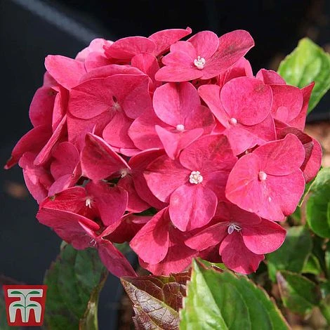 Hydrangea macrophylla ‘Alpengluehen’ is a compact plant with shiny, dark green foliage and red-pink flowers in July and August. However, if grown in an acidic soil, this deciduous shrub will bear flowerheads in shades of lavender, blue and mauve. Completely sun tolerant if provided with a rich, moisture retentive, free-draining soil. Height & Spread: 1.5m (5′).