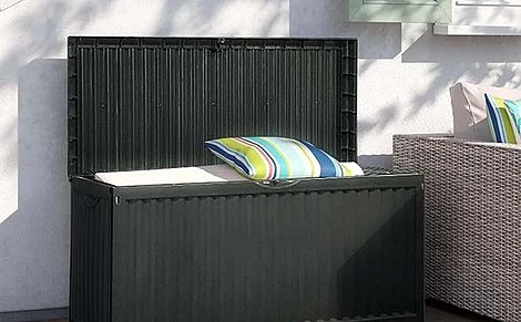 Save on storage space and keep your garden tidy with style! Fed up of having your garden tools, furniture cushions or kids outside toys taking up vital storage space in your shed or home? Then the 336 litre garden storage box bench is an ideal storage solution for all of your garden storage needs. Measuring 120 x 52 x 54 centimetres, this storage bench is perfect for your garden or patio, creating extra seating and storage all in one. This cargo storage box is suitable for all manner of small equipment and general items, including outdoor furniture, tools, cushions and kids toys. It comes in a bench style, so should fit in with your garden decor with ease. It also has the benefit of having wheels, making it easy to manoeuvre around your garden or patio. A strong and durable storage container that will protect your items for years to come! This garden storage bench is constructed from a heavy-duty anthracite plastic, making it all-year-round weather and UV Resistant. This will protect your items, keeping them dry and preventing fading from the sun while stored away. If you are looking to keep your items safe, the garden patio storage box incorporates a heavy-duty hinged lid. Keep your garden accessories hidden away and easily accessible, while adding extra seating to your garden or patio! Storing your used garden tools can be a messy affair, but due to the garden box plastic construction it will wipe clean with a damp cloth in seconds.