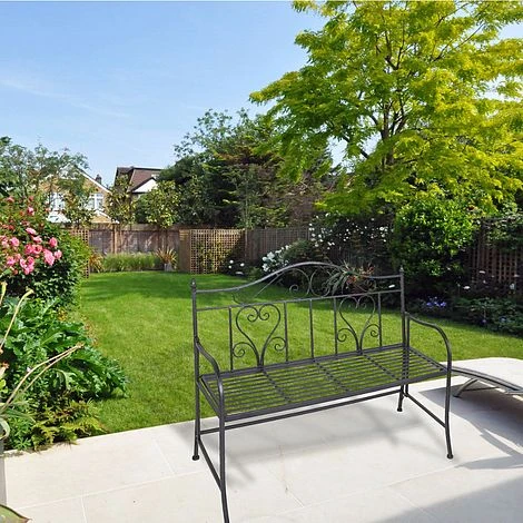 The stylish finish gives this unit an appeal that none of your friends or family can turn down. This charming bench creates an inviting spot in any garden for you to sit and appreciate your surroundings. Featuring a traditional heart design, finished in matt black paint it offers suitable protection to the weather and the elements. Its elegant, yet simple, design allow it to provide a much needed solution to many different garden and patio areas. Offering an effective design the seat can fold down and the ends fold in, allowing the bench to fold flat for easy and convenient storage.