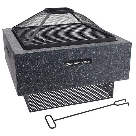 This idooka brand large fire pit makes an excellent garden heater for any occasion. Made with modern MgO which gives it a gorgeous stone effect while also being heat resistant and extremely safe. Accessories like a mesh cover fire guard/fire pit cover is provided to protect while cooking, and a fire poker tool. The fire basket is encased in the stunning body and can be filled with firelog or bbq charcoal briquettes and then given a spark to provide long lasting heating no matter the season or reason.
