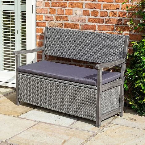 Search terms: Rattan bench, garden bench, wicker bench, storage bench, storage box, rowlinson bench, 2 seater bench