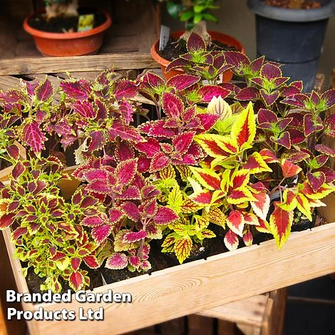 Solenostemon scutellarioides ‘Mix’ presents a dazzling kaleidoscope of chartreuse, scarlet, pink, gold and maroon, showcasing the very best of these wonderfully versatile foliage plants. The velvety leaves are irresistibly strokable and held in graceful tiers, each leaf elegantly pointed and finished with a serrated edge. The intricate details of each variety will captivate you throughout the season, with painterly splashes, finely drawn veining and picotee edging. Better still, these are tough, unfussy plants shaking off wind, adapting to rain or shine and readily pushing out bushy branches of alluring foliage that don’t require pinching out and will light up your bedding displays with exciting new colour combinations. Height and spread: 45cm (18in).