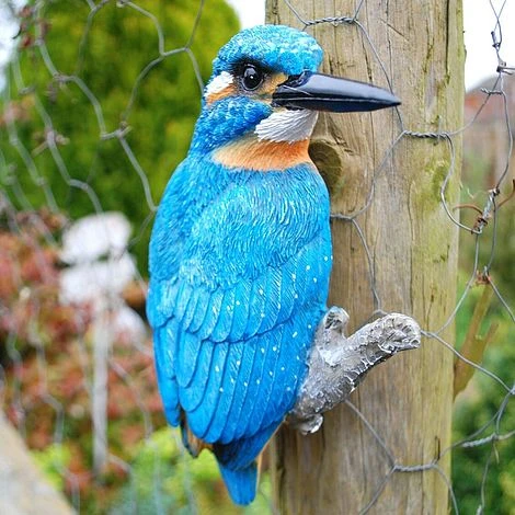 This stunning vivid blue Kingfisher bird garden ornament is ideal to mount on posts, fences, sheds and walls outdoors. Hand painted realistic design bird ornament that is full weather resistant. Kingfisher size 19cm tall, 14cm wide, 5cm deep. A wonderful ornament that would make a great gift idea for garden or bird lovers.